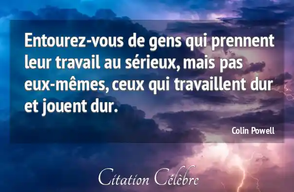 Entourez-vous de gens qui prennent leur travail au sérieux, mais pas eux-mêmes, ceux qui travaillent dur et jouent dur.