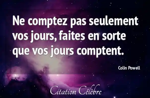 Ne comptez pas seulement vos jours, faites en sorte que vos jours comptent.