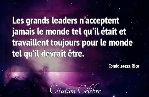 Les grands leaders n'acceptent jamais le monde tel qu'il était et travaillent toujours pour le monde tel qu'il devrait être.
