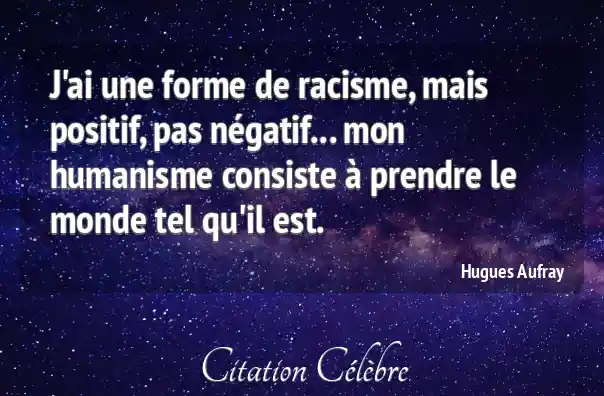 J'ai une forme de racisme, mais positif, pas négatif... mon humanisme consiste à prendre le monde tel qu'il est.