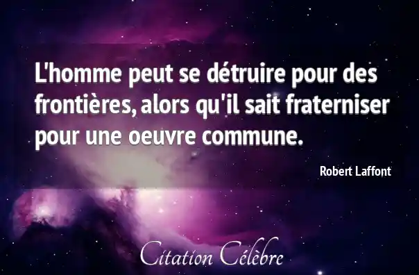 L'homme peut se détruire pour des frontières, alors qu'il sait fraterniser pour une oeuvre commune.