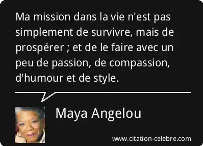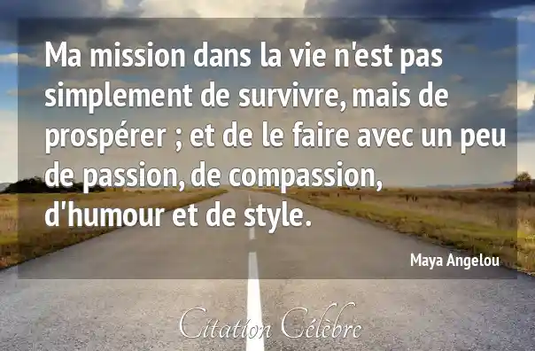 Ma mission dans la vie n'est pas simplement de survivre, mais de prospérer ; et de le faire avec un peu de passion, de compassion, d'humour et de style.