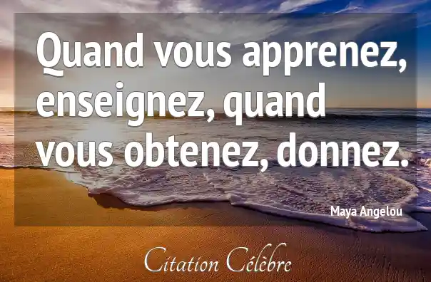 Quand vous apprenez, enseignez, quand vous obtenez, donnez.