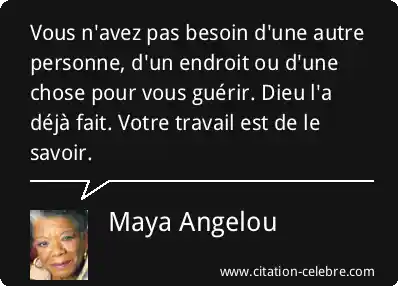Vous n'avez pas besoin d'une autre personne, d'un endroit ou d'une chose pour vous guérir. Dieu l'a déjà fait. Votre travail est de le savoir.