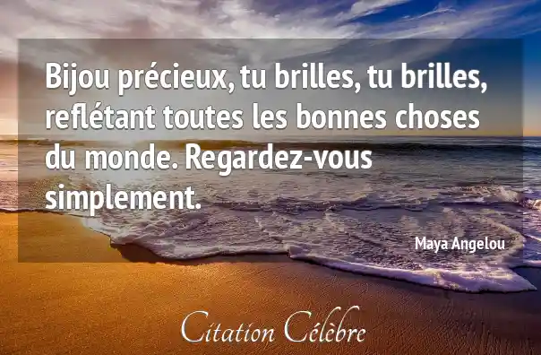 Bijou précieux, tu brilles, tu brilles, reflétant toutes les bonnes choses du monde. Regardez-vous simplement.