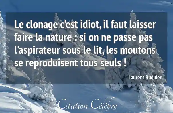 Le clonage c'est idiot, il faut laisser faire la nature : si on ne passe pas l'aspirateur sous le lit, les moutons se reproduisent tous seuls !