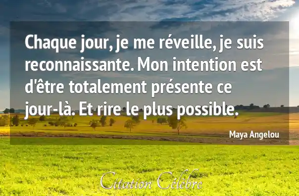 Chaque jour, je me réveille, je suis reconnaissante. Mon intention est d'être totalement présente ce jour-là. Et rire le plus possible.