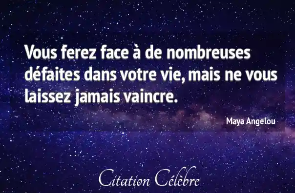 Vous ferez face à de nombreuses défaites dans votre vie, mais ne vous laissez jamais vaincre.