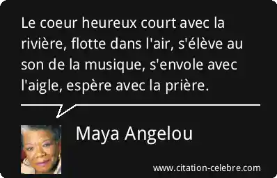 Le coeur heureux court avec la rivière, flotte dans l'air, s'élève au son de la musique, s'envole avec l'aigle, espère avec la prière.