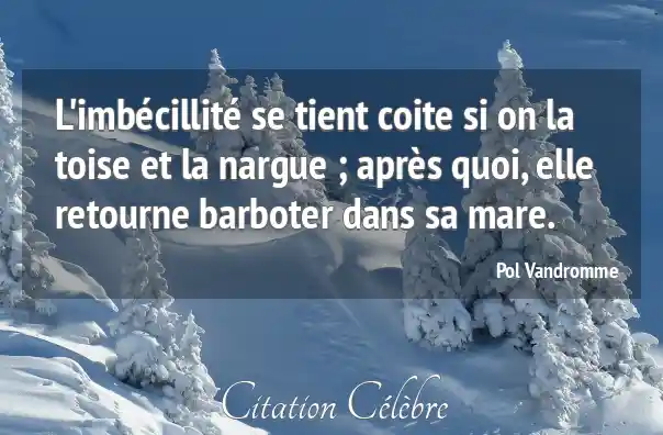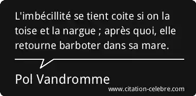 L'imbécillité se tient coite si on la toise et la nargue ; après quoi, elle retourne barboter dans sa mare.