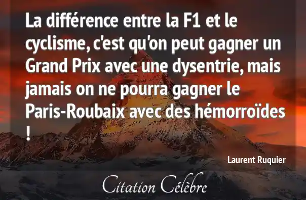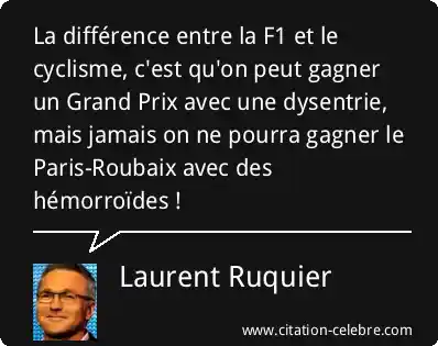 La différence entre la F1 et le cyclisme, c'est qu'on peut gagner un Grand Prix avec une dysentrie, mais jamais on ne pourra gagner le Paris-Roubaix avec des hémorroïdes !