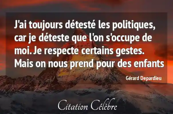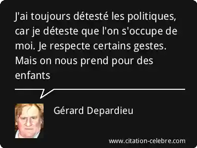 J'ai toujours détesté les politiques, car je déteste que l'on s'occupe de moi. Je respecte certains gestes. Mais on nous prend pour des enfants