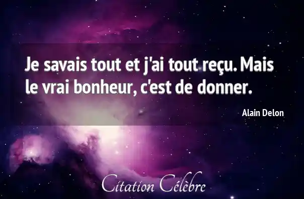 Je savais tout et j'ai tout reçu. Mais le vrai bonheur, c'est de donner.