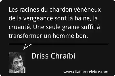 Les racines du chardon vénéneux de la vengeance sont la haine, la cruauté. Une seule graine suffit à transformer un homme bon.