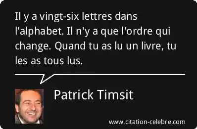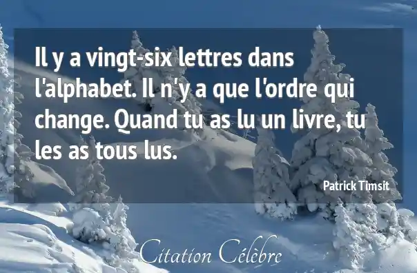 Il y a vingt-six lettres dans l'alphabet. Il n'y a que l'ordre qui change. Quand tu as lu un livre, tu les as tous lus.