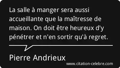 La salle à manger sera aussi accueillante que la maîtresse de maison. On doit être heureux d'y pénétrer et n'en sortir qu'à regret.