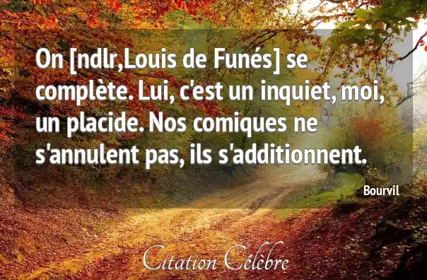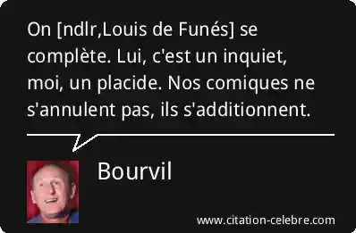 On [ndlr,Louis de Funés] se complète. Lui, c'est un inquiet, moi, un placide. Nos comiques ne s'annulent pas, ils s'additionnent.