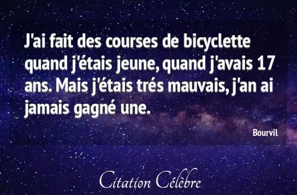J'ai fait des courses de bicyclette quand j'étais jeune, quand j'avais 17 ans. Mais j'étais trés mauvais, j'an ai jamais gagné une.