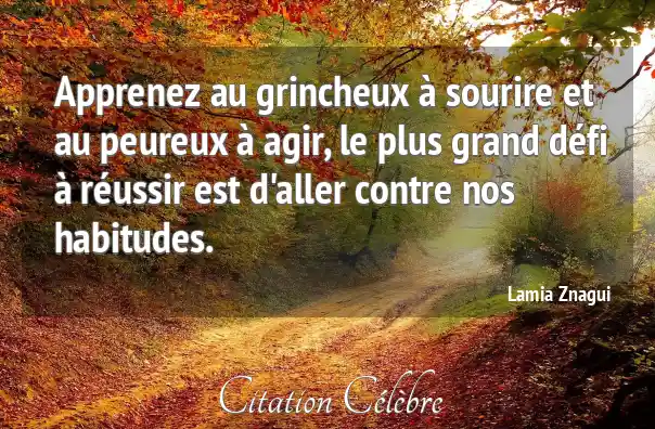 Apprenez au grincheux à sourire et au peureux à agir, le plus grand défi à réussir est d'aller contre nos habitudes.