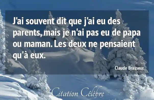 J'ai souvent dit que j'ai eu des parents, mais je n'ai pas eu de papa ou maman. Les deux ne pensaient qu'à eux.