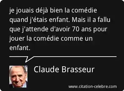 je jouais déjà bien la comédie quand j'étais enfant. Mais il a fallu que j'attende d'avoir 70 ans pour jouer la comédie comme un enfant.