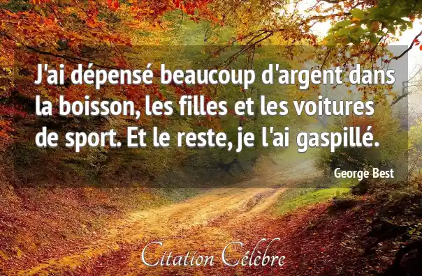J'ai dépensé beaucoup d'argent dans la boisson, les filles et les voitures de sport. Et le reste, je l'ai gaspillé.