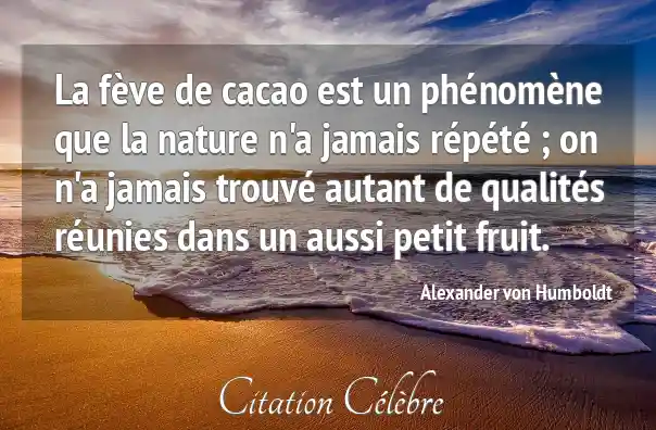 La fève de cacao est un phénomène que la nature n'a jamais répété ; on n'a jamais trouvé autant de qualités réunies dans un aussi petit fruit.