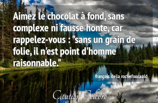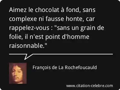 Aimez le chocolat à fond, sans complexe ni fausse honte, car rappelez-vous : "sans un grain de folie, il n'est point d'homme raisonnable."