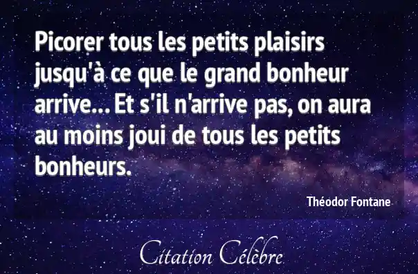 Picorer tous les petits plaisirs jusqu'à ce que le grand bonheur arrive... Et s'il n'arrive pas, on aura au moins joui de tous les petits bonheurs.