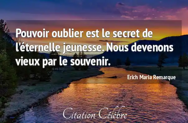 Pouvoir oublier est le secret de l'éternelle jeunesse. Nous devenons vieux par le souvenir.