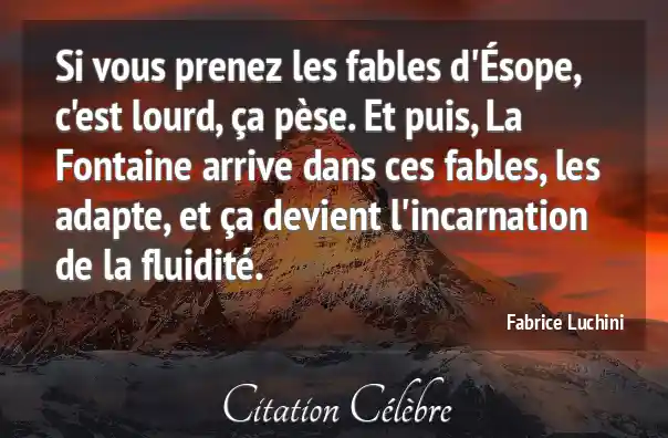 Si vous prenez les fables d'Ésope, c'est lourd, ça pèse. Et puis, La Fontaine arrive dans ces fables, les adapte, et ça devient l'incarnation de la fluidité.