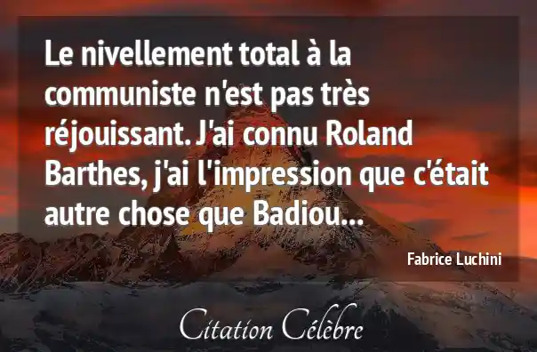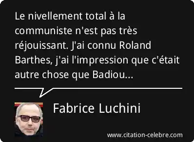 Le nivellement total à la communiste n'est pas très réjouissant. J'ai connu Roland Barthes, j'ai l'impression que c'était autre chose que Badiou...