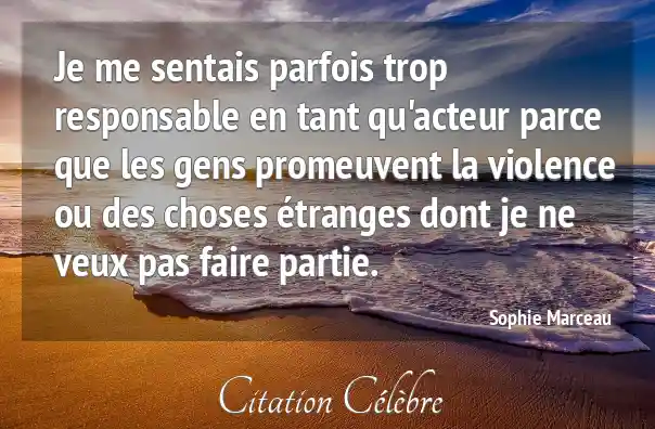 Je me sentais parfois trop responsable en tant qu'acteur parce que les gens promeuvent la violence ou des choses étranges dont je ne veux pas faire partie.