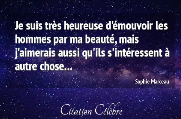 Je suis très heureuse d'émouvoir les hommes par ma beauté, mais j'aimerais aussi qu'ils s'intéressent à autre chose...