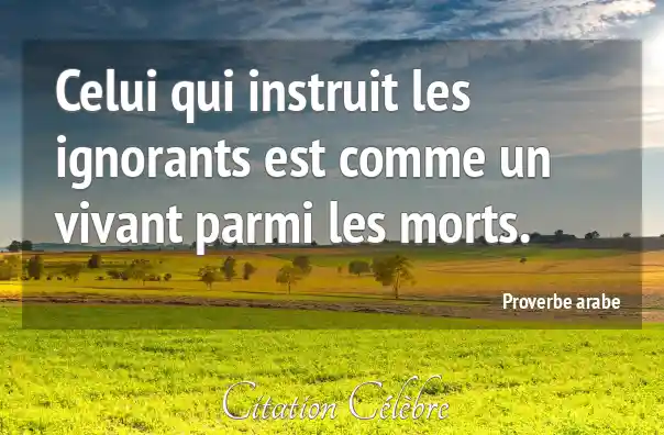 Celui qui instruit les ignorants est comme un vivant parmi les morts.