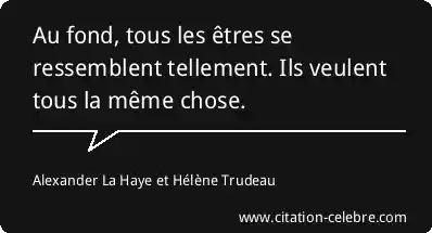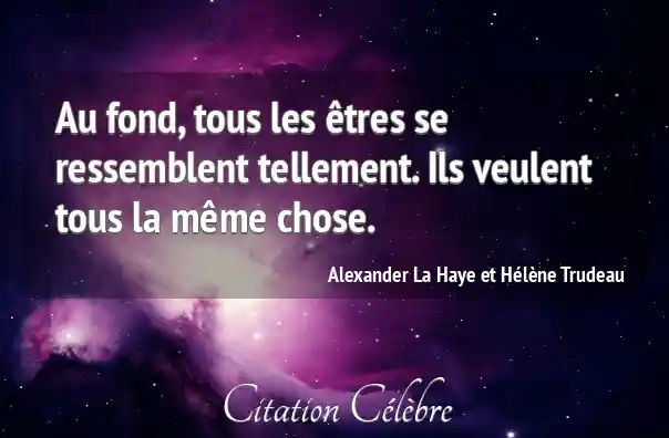 Au fond, tous les êtres se ressemblent tellement. Ils veulent tous la même chose.