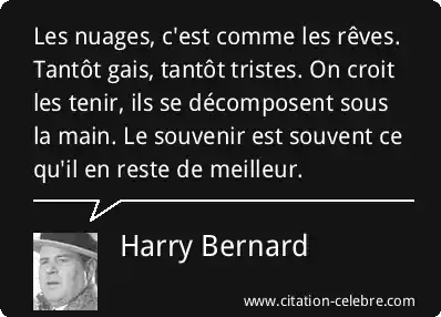 Les nuages, c'est comme les rêves. Tantôt gais, tantôt tristes. On croit les tenir, ils se décomposent sous la main. Le souvenir est souvent ce qu'il en reste de meilleur.
