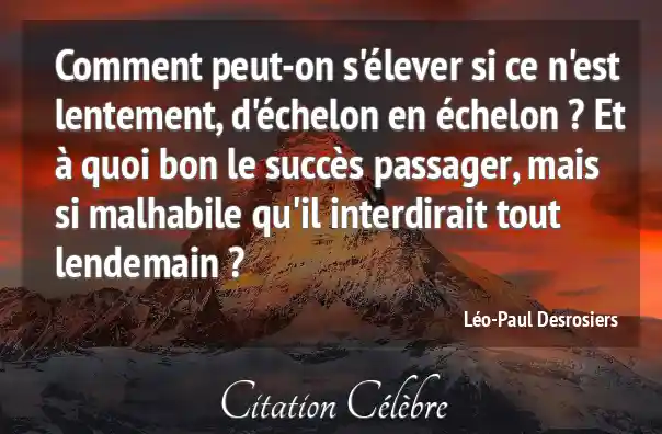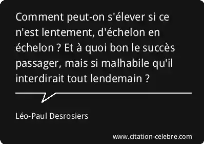 Comment peut-on s'élever si ce n'est lentement, d'échelon en échelon ? Et à quoi bon le succès passager, mais si malhabile qu'il interdirait tout lendemain ?