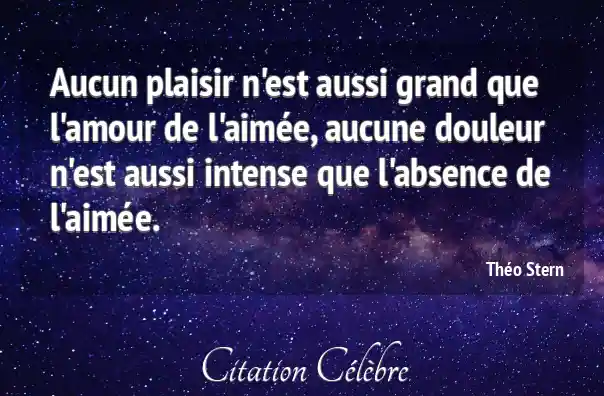 Aucun plaisir n'est aussi grand que l'amour de l'aimée, aucune douleur n'est aussi intense que l'absence de l'aimée.