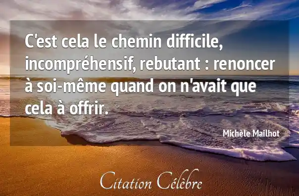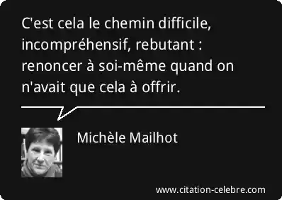 C'est cela le chemin difficile, incompréhensif, rebutant : renoncer à soi-même quand on n'avait que cela à offrir.