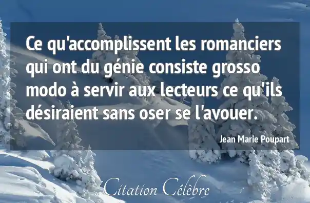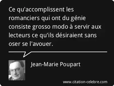 Ce qu'accomplissent les romanciers qui ont du génie consiste grosso modo à servir aux lecteurs ce qu'ils désiraient sans oser se l'avouer.
