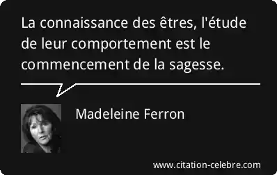Citation Madeleine Ferron connaissance : La connaissance des êtres, l'étude de leur comportement est le...