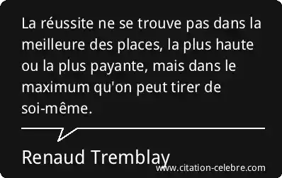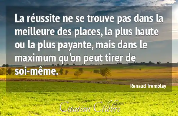 La réussite ne se trouve pas dans la meilleure des places, la plus haute ou la plus payante, mais dans le maximum qu'on peut tirer de soi-même.