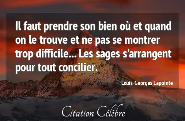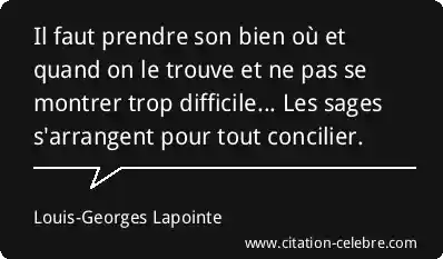 Il faut prendre son bien où et quand on le trouve et ne pas se montrer trop difficile... Les sages s'arrangent pour tout concilier.