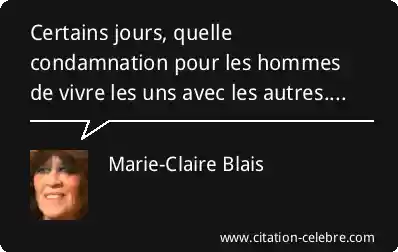 Certains jours, quelle condamnation pour les hommes de vivre les uns avec les autres....