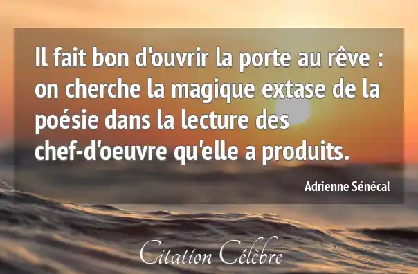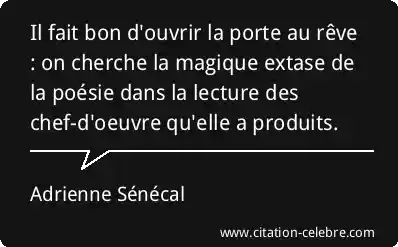 Il fait bon d'ouvrir la porte au rêve : on cherche la magique extase de la poésie dans la lecture des chef-d'oeuvre qu'elle a produits.