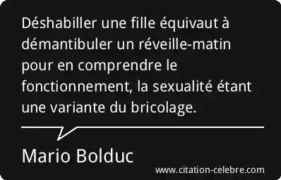 Déshabiller une fille équivaut à démantibuler un réveille-matin pour en comprendre le fonctionnement, la sexualité étant une variante du bricolage.