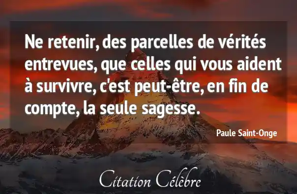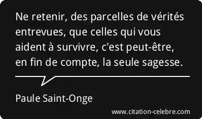 Ne retenir, des parcelles de vérités entrevues, que celles qui vous aident à survivre, c'est peut-être, en fin de compte, la seule sagesse.
