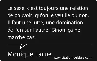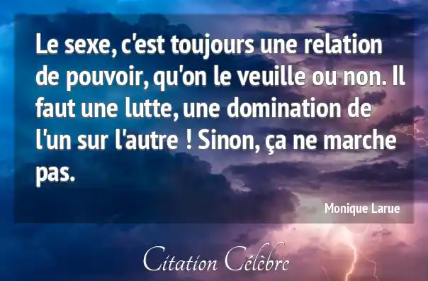 Le sexe, c'est toujours une relation de pouvoir, qu'on le veuille ou non. Il faut une lutte, une domination de l'un sur l'autre ! Sinon, ça ne marche pas.