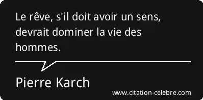 Citation Pierre Karch vie : Le rêve, s'il doit avoir un sens, devrait dominer la...